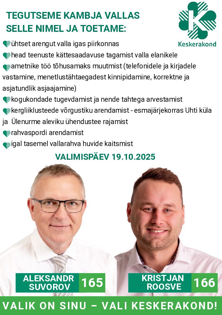 Valimisnädal kestab 13.-19. oktoobrini, valimispäev on 19. oktoober 2025.