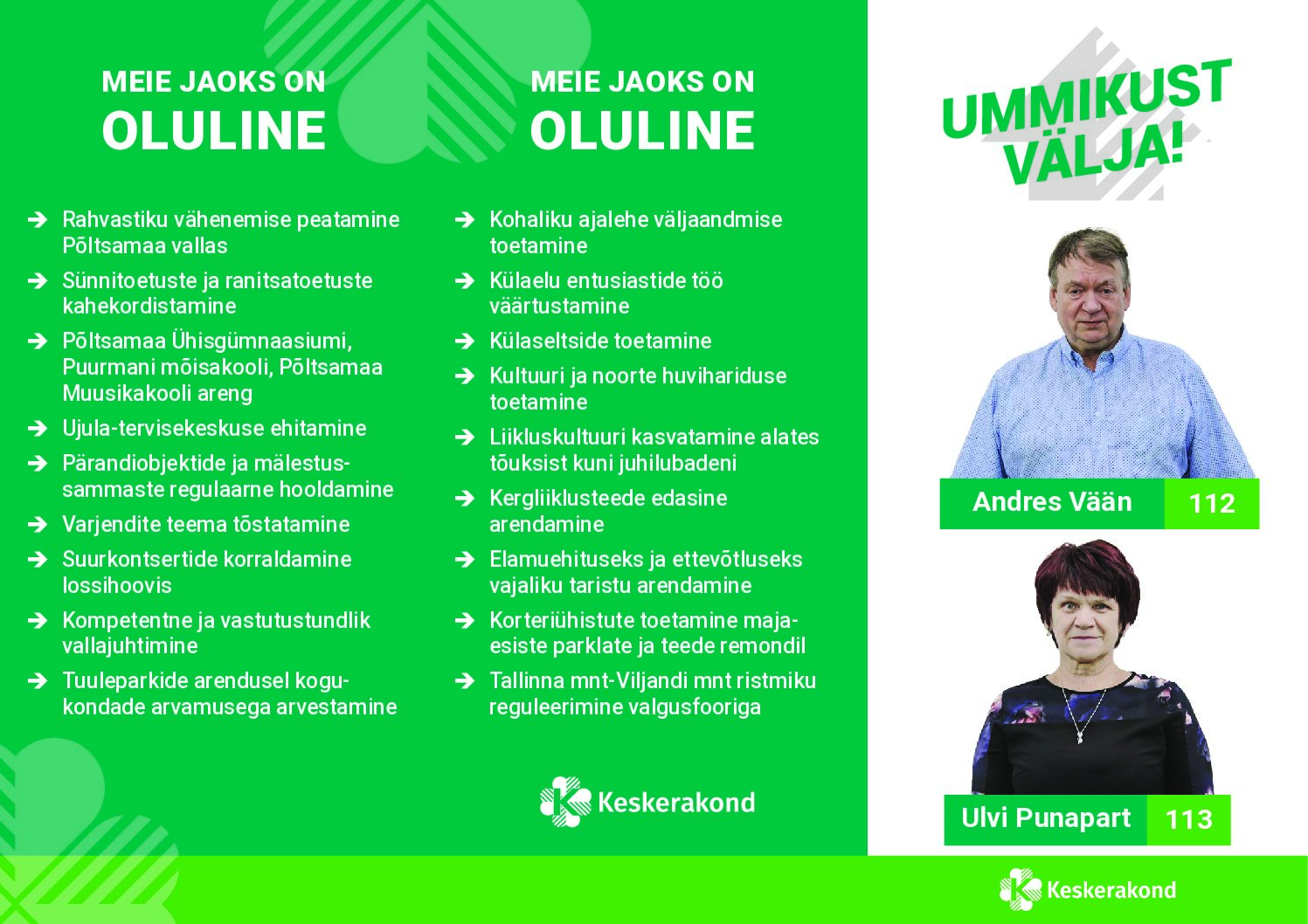 Viimased poolteist aastat on näidanud, et ainult Keskerakonna juhtimisel saab Tallinnas taastuda asjatundlik linnajuhtimine. Sinu toetusel tõmbame Tallinna ummikust välja!